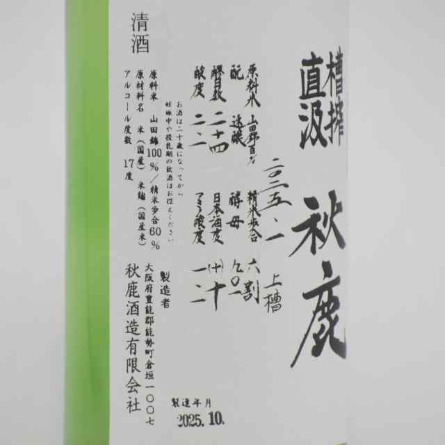 秋鹿 生もと 雄町・山田 無濾過生原酒 1.8L